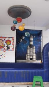 Fun with colors and creativity is all here in Art and craft room for kids, children learn to draw, color, glitter, cut and paste and create masterpiece with their little hands that helps them thinks creative. Different techniques and tools, preferably Eco friendly or child friendly material are used under the supervision of trained teachers that help child to explore themselves in the world of art.